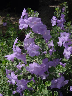 Lowrey’s Legacy is sometimes called ‘Lynn’s Ever-blooming’ Texas sage, because of the reliable and continuous profusion of flower displayed throughout much of the year. This flowering consistency is a marketable attribute for wholesalers and retailers alike. It is also a ‘compact’ plant that comfortably grows to a kept size of 4-5 feet tall and it also has a similar-width which makes for a dense, well-rounded and shapely form. The plant does not develop that ‘leggy” appearance many Texas sage/cenizo plants develop over-time. Texas sages’ green foliage provides a wonderful backdrop for its large “azalea like” lilac blue flowers, delivering some of the largest and most attractive blooms of any Texas sages on the market today. For birders, this plant is a “must’ for attracting hummingbirds. And compared to other selections of Texas sage/cenizo, this one is not as dependent on changes in relative humidity for flowering (e.g., the barometer plant); which also means it blooms more often during the course of the summer than other selections.