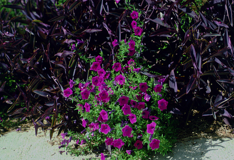 Petunias are NORMALLY extremely "thermophotoperiodic." That is, their growth habit responds according to the temperature and the amount of daylight. At 62 degrees F. to 75 degrees F. , the growth habit will vary depending on daylength. At temperatures above 75 degrees F., whether under short (less than 12 hours) or long (more than 12 hours) days, the plant will USUALLY be tall and leggy with a single flower. This is how hot weather takes its toll on petunias. I emphasize the terms NORMALLY and USUALLY because the V.I.P. petunia defies the law of thermophotoperiodics since it is a trailing type, perfect for hanging baskets. To add icing to the cake, so to speak, the V.I.P. petunia is practically sterile which stimulates continuous bloom. This super V.I.P. petunia is only available in one color -- violet. The violet color, composed of purple and red pigments, practically glows. According to color expert Ken Charbonnau, Director of Color Marketing at Benjamin Moore Paint Company, the big news in color are purple and blue-violet. In the backyard garden or for patio containers, you may want to create a more relaxing and serene mood by choosing cooler or softer colors which V.I.P. petunia provides.