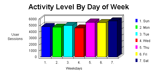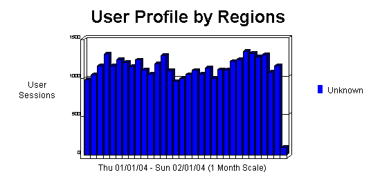 The User Profile by Regions graph identifies the general location of the visitors to your Web site. The General Statistics table includes statistics on the total activity for this server during the designated time frame.