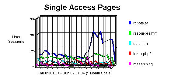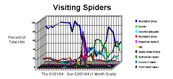This section identifies all robots, spiders, crawlers and search services (i.e. Alta Vista, Lycos, and Excite) visiting your site.