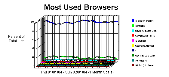 This section identifies the most popular WWW Browsers used by visitors to your site. This information will only be displayed if your server is logging the browser/platform information.