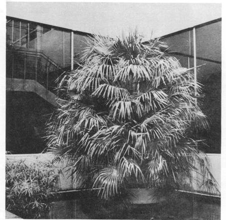 This European fan palm adorns a courtyard at the In the following