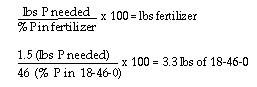 Since the 18-46-0 is the only source of phosphorus, determine how much is needed to provide 15 lbs of P by the following equation: