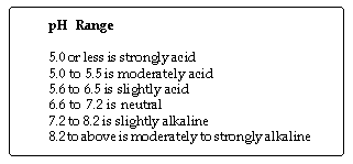 Soil acidity is determined by a pH meter that measures the hydrogen ion concentration in the soil solution. The hydrogen row concentration is expressed in pH units with 5 being strongly acid, 7 being neutral and 8.2 being strongly alkaline. Each pH unit decrease below 7 represents a 10-fold increase in hydrogen concentration, or acidity.